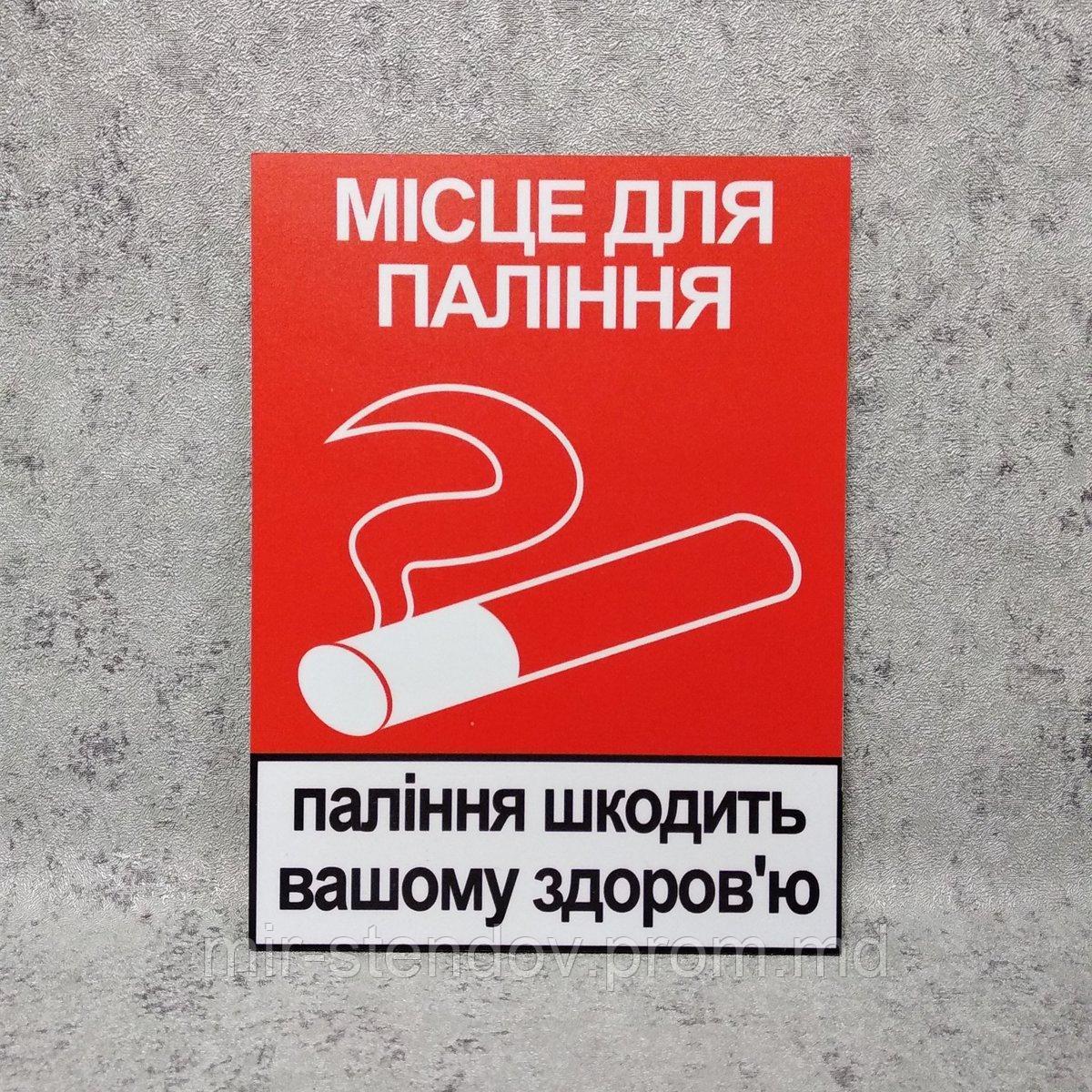Пластикова табличка з пожежної безпеки "Місце для паління".