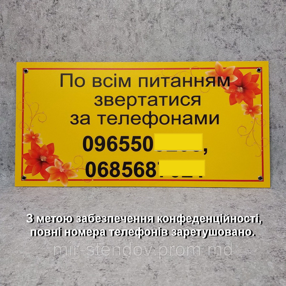 Табличка - інформаційна, з контактними номерами телефонів