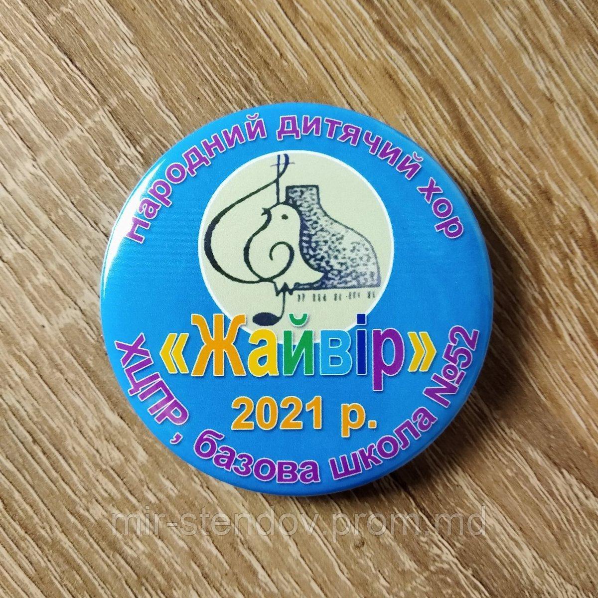 Металевий значок із шпилькою. Виготовляється на власному обладнанні діаметром 50 та 58 мм.